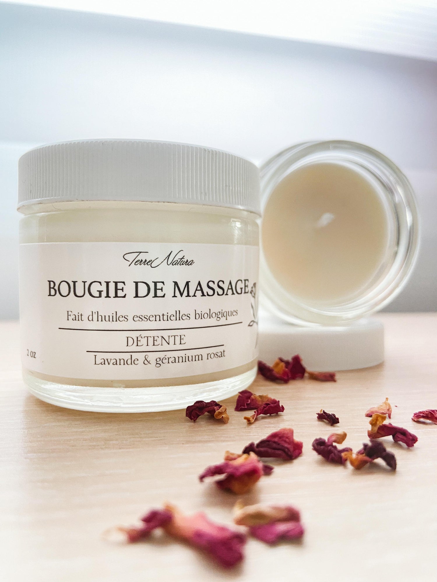 Profitez d'une ambiance d'aromathérapie avec la bougie de massage détente, qui vous aidera à relaxer tout en hydratant votre peau.