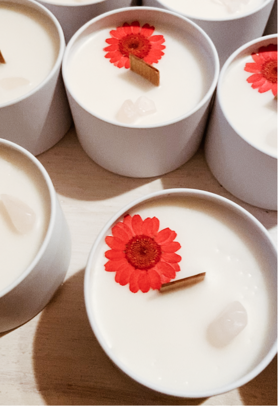 Laissez-vous envelopper par la douceur de nos bougies faites à la main, conçues avec soin à partir de cire de soja naturelle, d’huiles essentielles et de fragrances naturelles. Chaque bougie est une pièce unique qui allie beauté et bien-être.