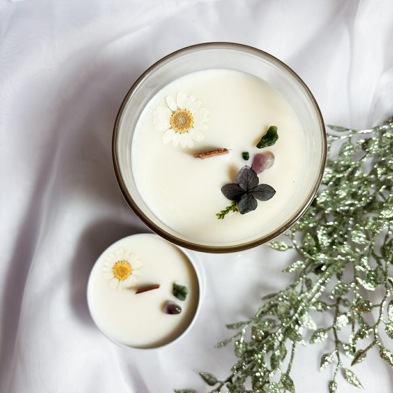 • Décorées de fleurs séchées naturelles qui subliment leur apparence et créent une ambiance délicate.