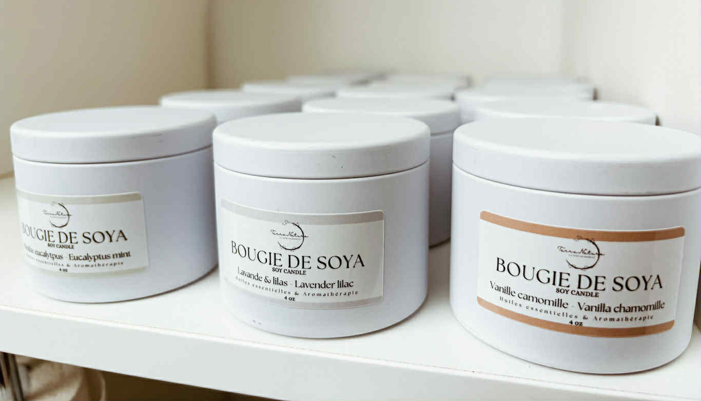Laissez-vous envelopper par la douceur de nos bougies faites à la main, conçues avec soin à partir de cire de soja naturelle, d’huiles essentielles et de fragrances naturelles. Chaque bougie est une pièce unique qui allie beauté et bien-être.