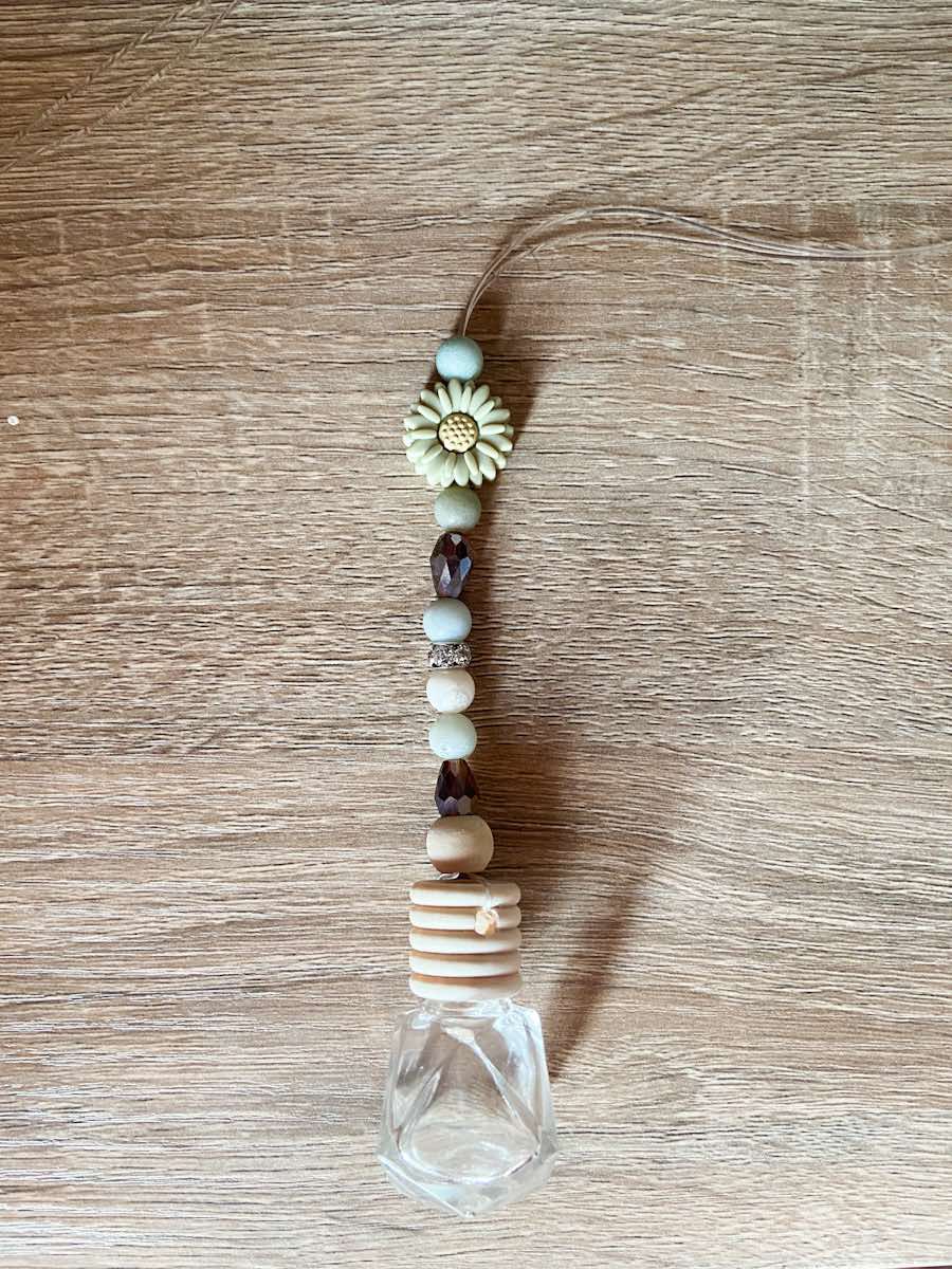 Nos diffuseurs pour voiture sont fournis avec une bouteille en verre, un bouchon en bois, un bouchon en plastique, une corde, des perles et de l'huile pour diffuseur. Le diffuseur contient 10 ml d'huile. Il est inutile de remplir à rebord le diffuseur afin d'éviter les débordement et de gaspiller l'huile.