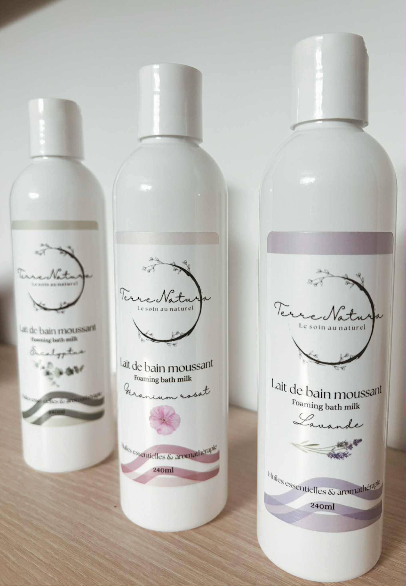 Offrez-vous un moment de pur réconfort avec notre lait de bain moussant naturel, formulé exclusivement avec des ingrédients doux et des huiles essentielles de qualité thérapeutique.